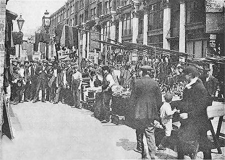 Street markets in those days were the normal places that working families went for their needs, rather than shops as we know them today. It has to be remembered that supermarkets did not exist at that time, and although the firms that were later to be come large national chains were already in business, they still comprised in the main, small grocery shops in the more affluent areas. In the east end, whilst small corner shops selling grocery lines, existed, shopping by and large was done at the street market. Stalls for the most part stuck to their own commodities, the butcher, dairy man, fruit and vegetables, and so on.